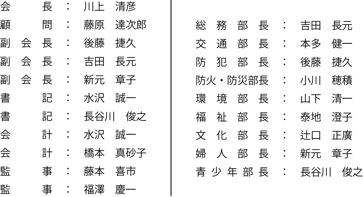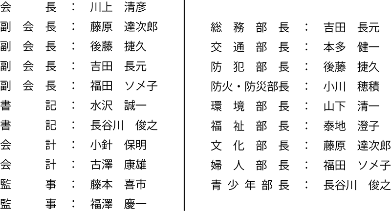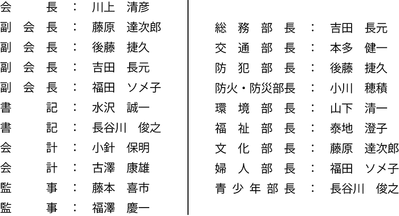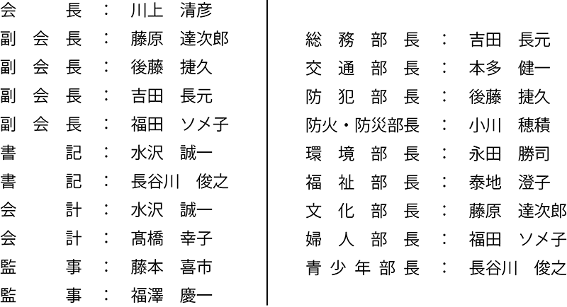 *平成29~30年度 中央八丁目町会役員(各部長まで)