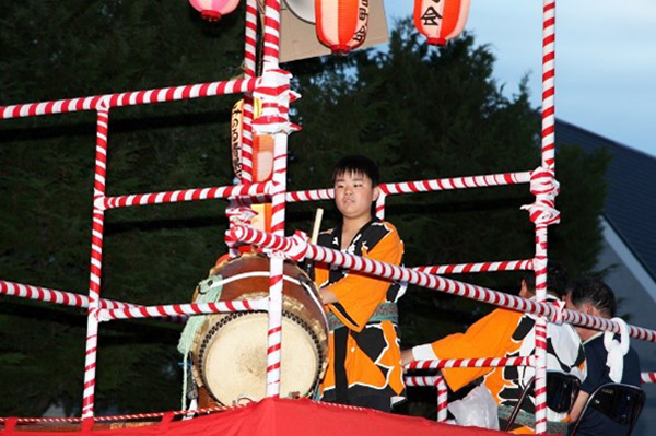 蒸し暑い夏の夜に元気な太鼓が鳴り響き、たくさんの方に踊っていただきました。