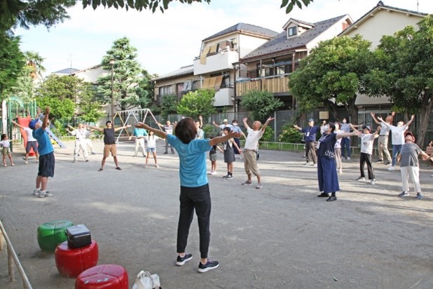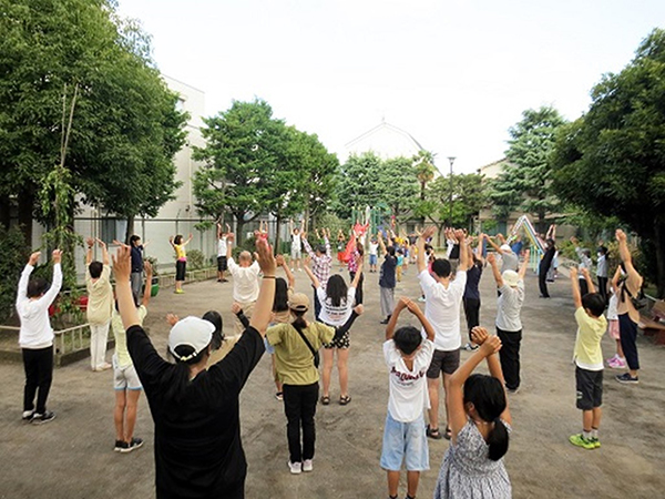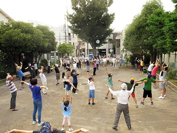 7月20日(土)から8月4日(日)の9日間、中央八丁目文化児童公園で早朝ラジオ体操を実施しました。