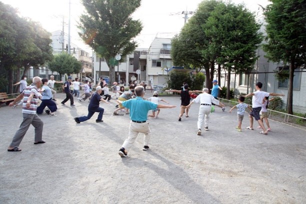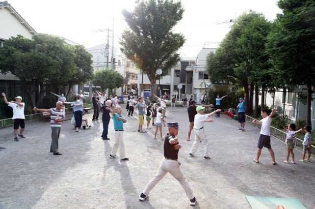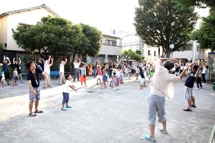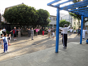 7月21日(土)から7月28日(土)の8日間、中央八丁目文化児童公園で早朝ラジオ体操を錦栄会通り商店会の協賛で実施しました。