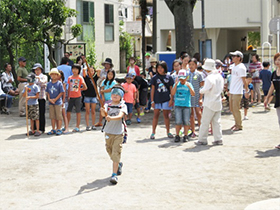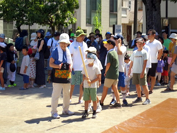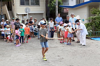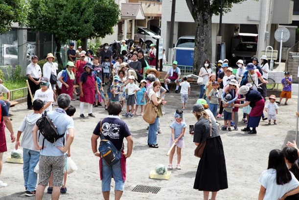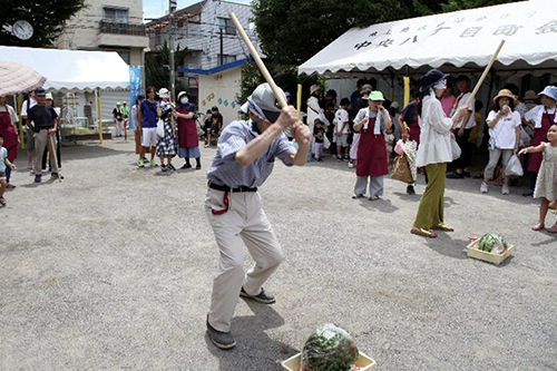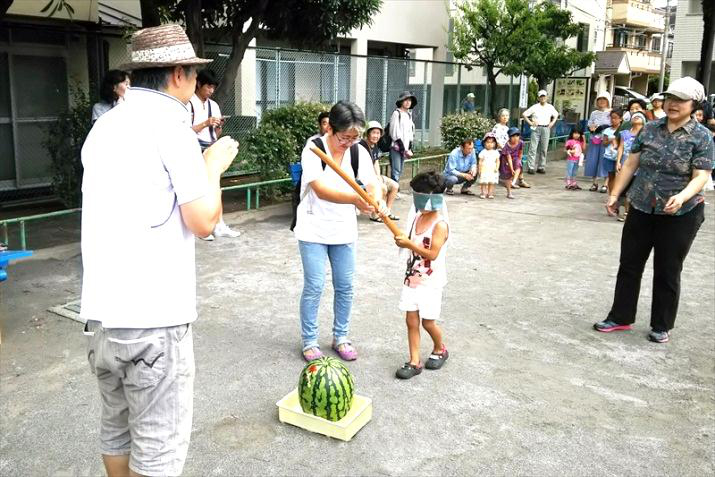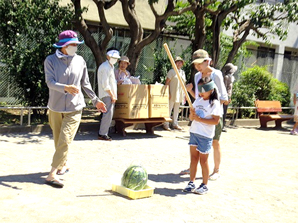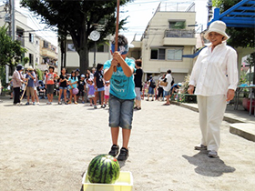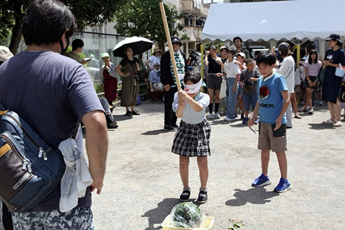 強い日差しで大変でしたが、子供たちは元気にスイカを叩いていました。