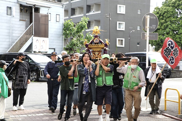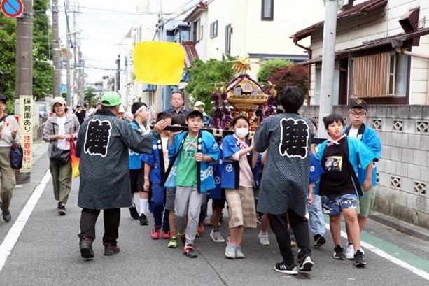 最後に、町会の班長さんや大人の人でお神輿を担いでお祭りを楽しみました。