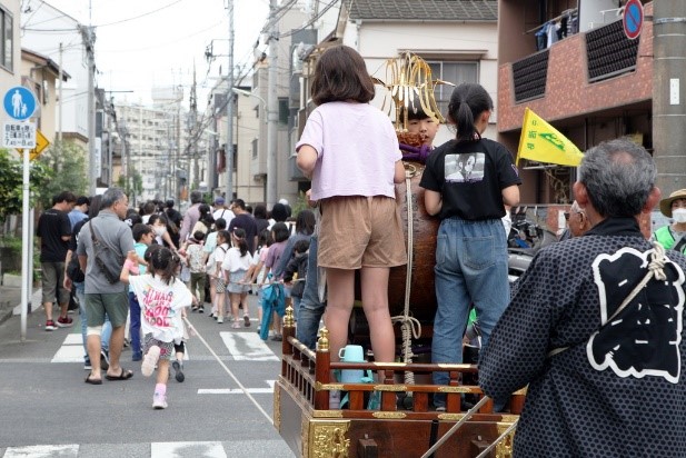 たくさんの子どもたちが元気にお神輿や山車の巡航に頑張りました。