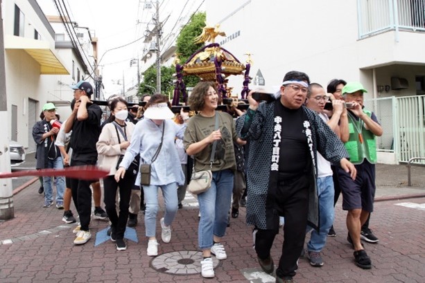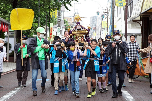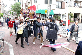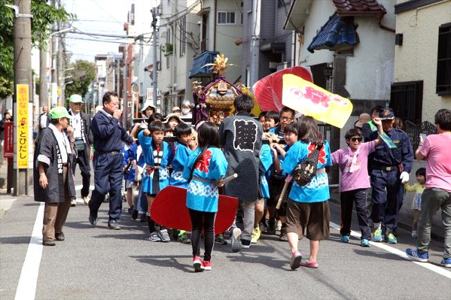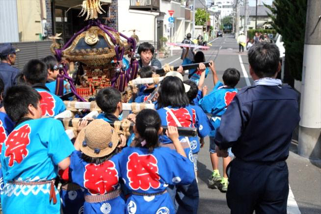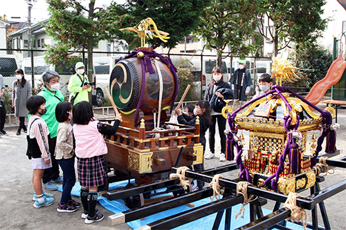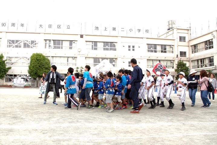 また、今年は池上第二小学校の開校90周年の祝賀行事として、13日に中央八丁目と堤方東、市野倉南の3町会からお神輿や山車が小学校に集結しました。