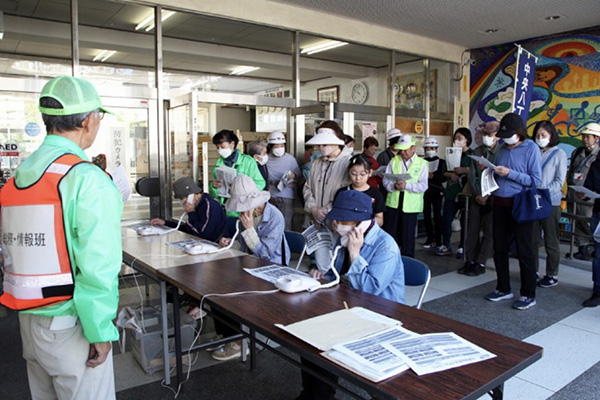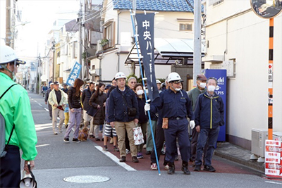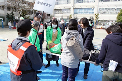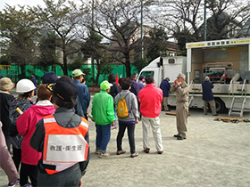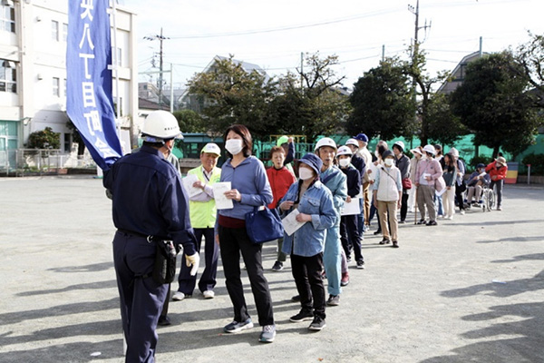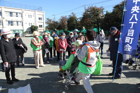 午前8時30分に一時避難場所である文化児童公園に集合し、避難所である池上第二小学校に移動して避難者救護や地域活動等の班に分かれて訓練を実施しました。