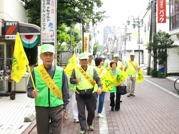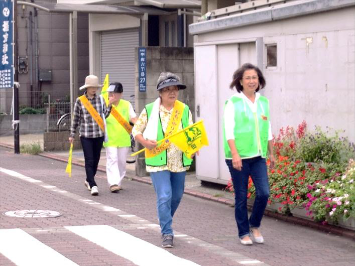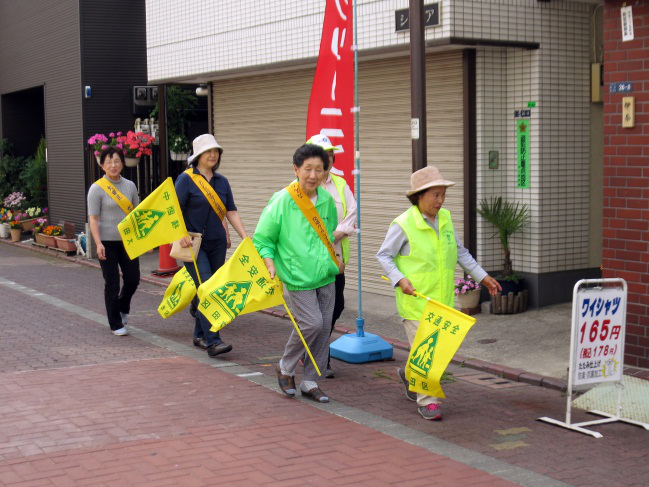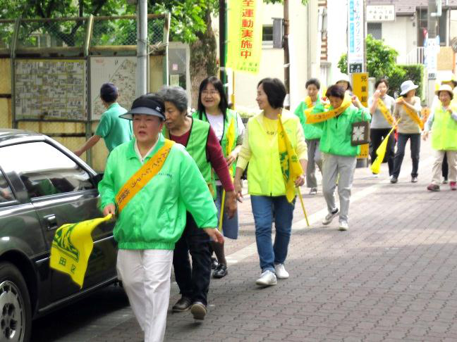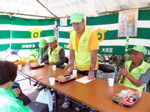 町会では、今年のスローガン「やさしさが 走るこの街 この道路」のもと、して啓発活動を実施しました。