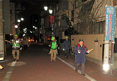 例年通り午後8時から1時間程、町内の防犯・防火のため、拍子木を叩きながら町内の隅々まで巡回しました。
