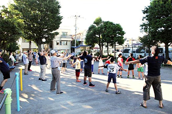 7月19日から8月3日の16日間、中央八丁目文化児童公園で早朝ラジオ体操を実施しました。