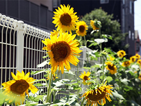 ふれあいパーク活動の一環で、セントラル大田にまいたひまわりが今年もきれいに咲きました。
