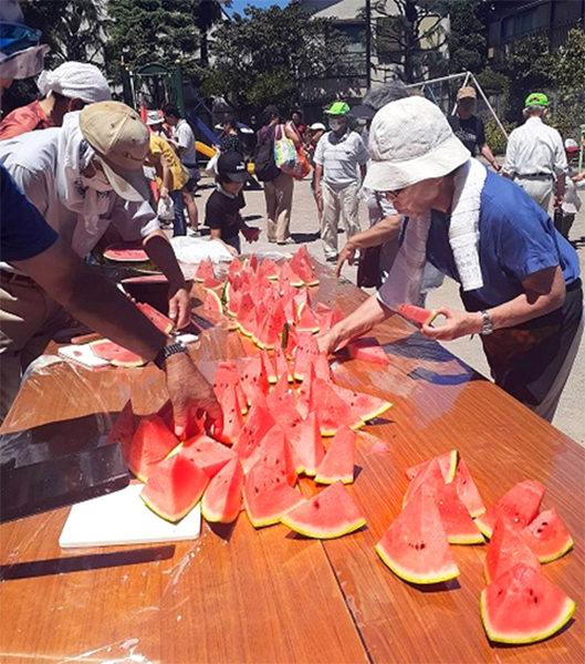 今年も200名近くの方に冷えたスイカを振舞うことができました。