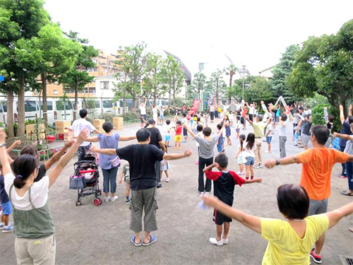 7月21日(金)から7月29日(土)の9日間、中央八丁目文化児童公園で早朝ラジオ体操を錦栄会通り商店会の協賛で実施しました。降雨で中止となる日もなく、毎朝元気に体操をすることができました。