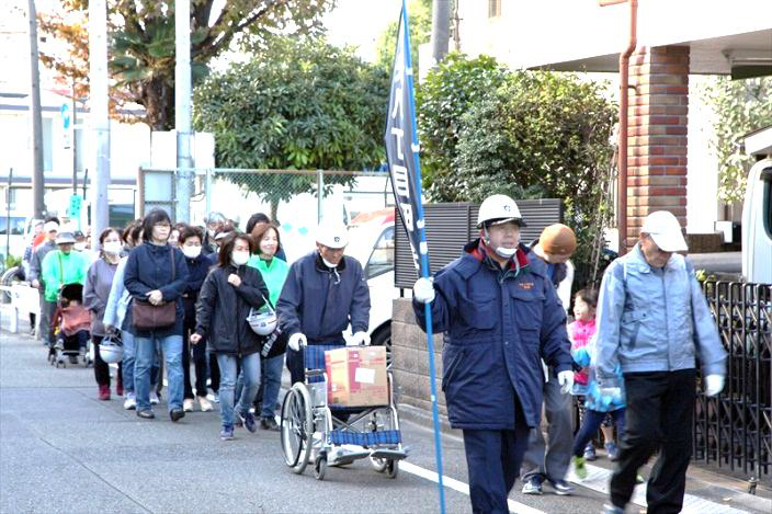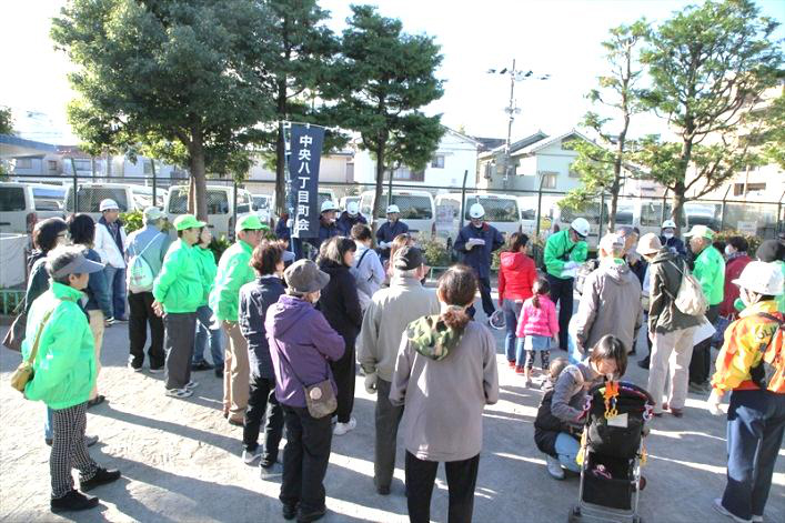 11月4日(日)に、当町会と堤方東町会および市野倉南町会の三町会合同で防災訓練を実施しました。