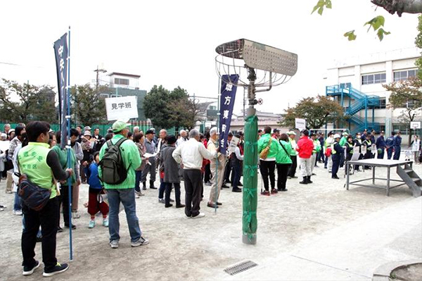 11月4日(日)午前8時30分より、中央八丁目、堤方東、市野倉南の三町会合同で学校防災拠点訓練を池上第二小学校で実施しました。