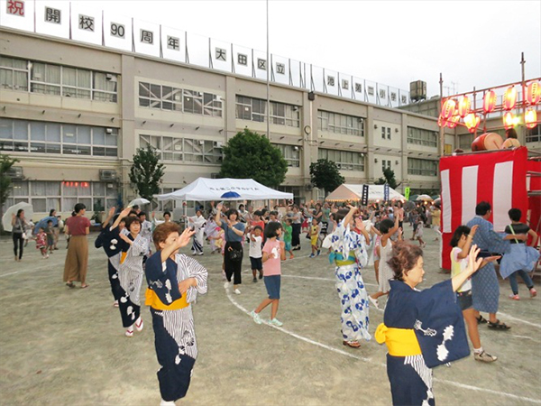 9月1日(土)に池上第二小学校開校90周年記念行事として、当町会と堤方東、市野倉南町会が協力して盆踊り大会を開催しました。