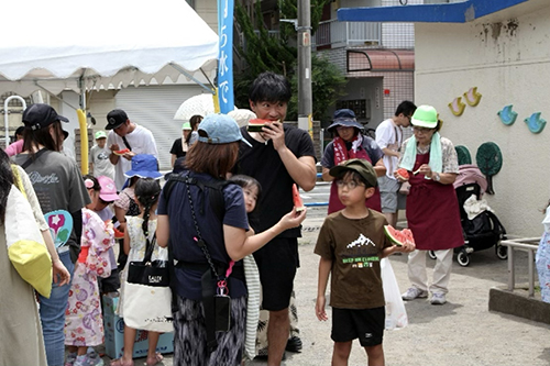 子どもたちが口いっぱいにスイカを頬張る微笑ましい姿が印象的でした。
