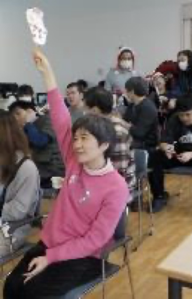 みんなでクリスマス衣装を着けて、クイズ大会で盛り上がりました。