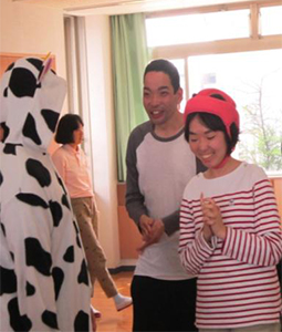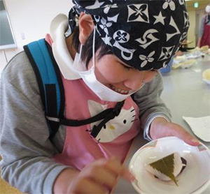みんなでひな祭りをやりました。実習生さんがかわいい人形を使ったゲームをやったり、みんなで踊ったり楽しみました。そして・・・クッキングクラブでは桜餅作り。とってもおいしくできました。