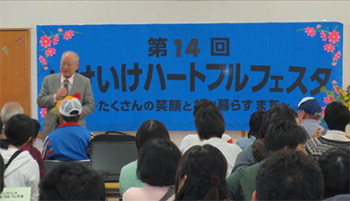 最後の挨拶で、池上福祉園の「いけいけハートフルフェスタ」のアナウンスも行なっています。