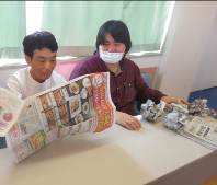 新聞紙で作った豆を作って…鬼を倒すぞー!!