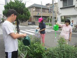 ■なでしこの会さんと花に水やり