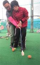 アクティビティークラブではみんなでゴルフに行きました。慣れてくるとボールに当たるようになりました。