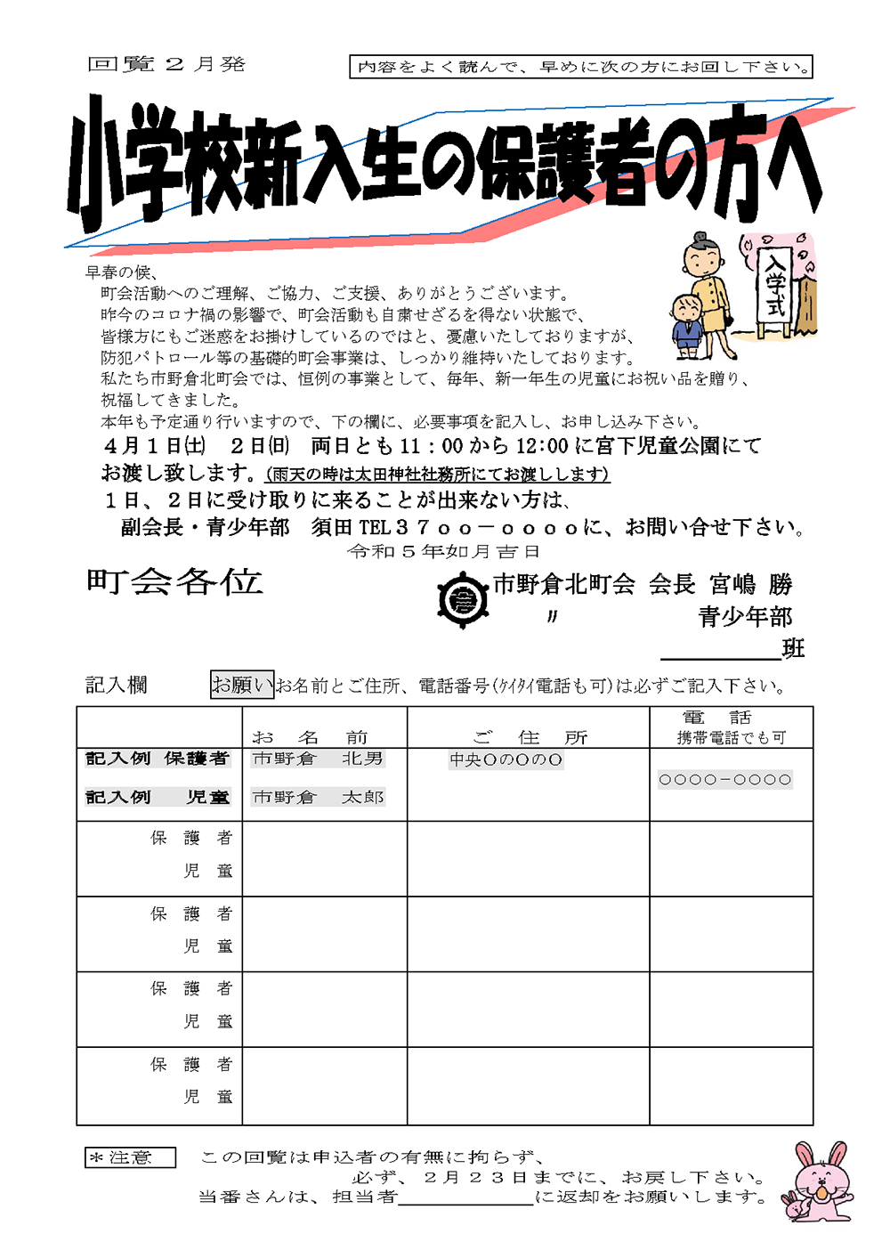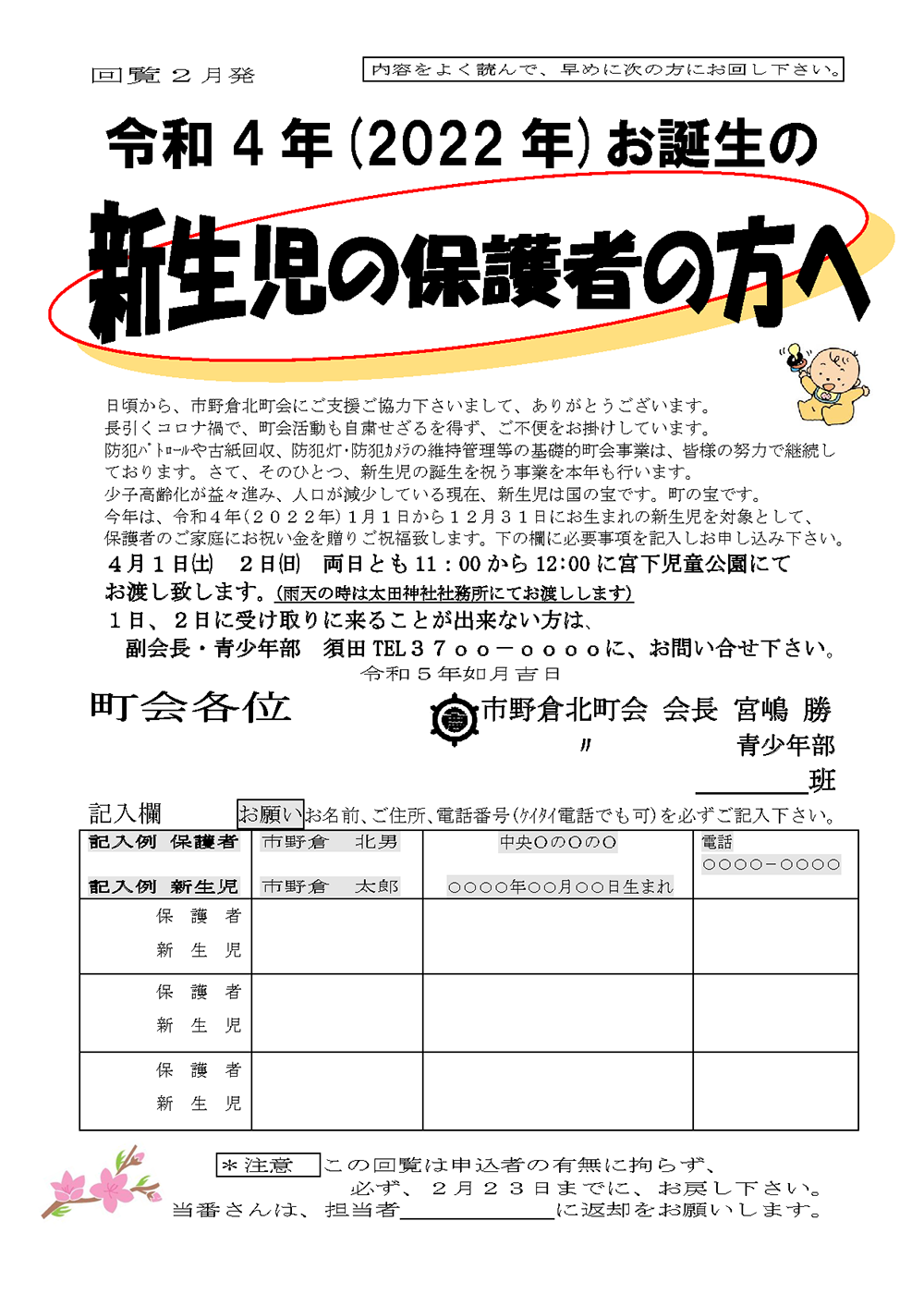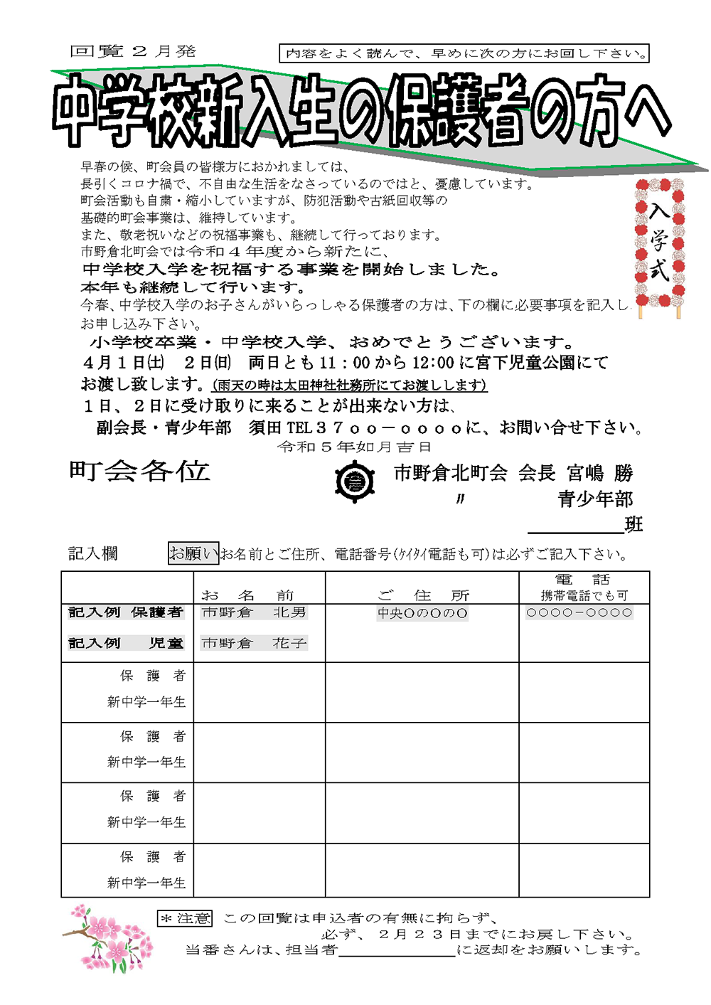 こんな季節感の中で市野倉北町会は年を重ねてきました。当たり前に続けてきたことを大切に、次世代またその次の世代へと渡していきたいと、町会長他役員は思っています。大きなマンションが建ち、建売住宅も増えました。古くから住み続けている方達、新たに住み始めた方達、なにはともあれ、ずーと住んでいたい町にしていきましょう。