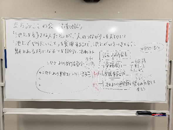 後者は、会の活動目的を実現する組織として「連携事業部」を設置し、「池上ファンとのつながりづくり」を行うための「渉外」「事業」の2担当を置くこととしました。