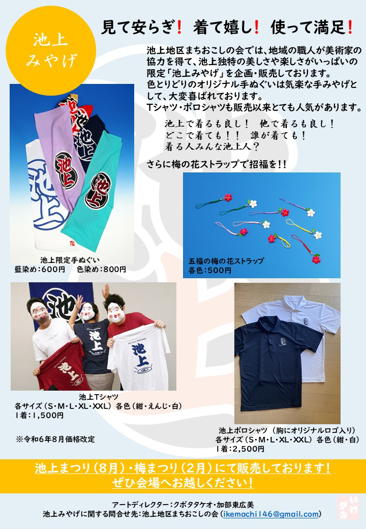 この度、長年ご好評いただいております、池上みやげページをリニューアルしました。毎年8月に開催する池上まつりと2月に開催する梅まつりにて販売しておりますので、ぜひ会場に足をお運びください。
