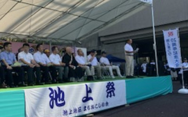 開会式では池上会館前の野外ステージにて行われました。大田区長松原忠義様をはじめ池上本門寺大田区議会議長、来賓としてきてくださいました。
