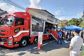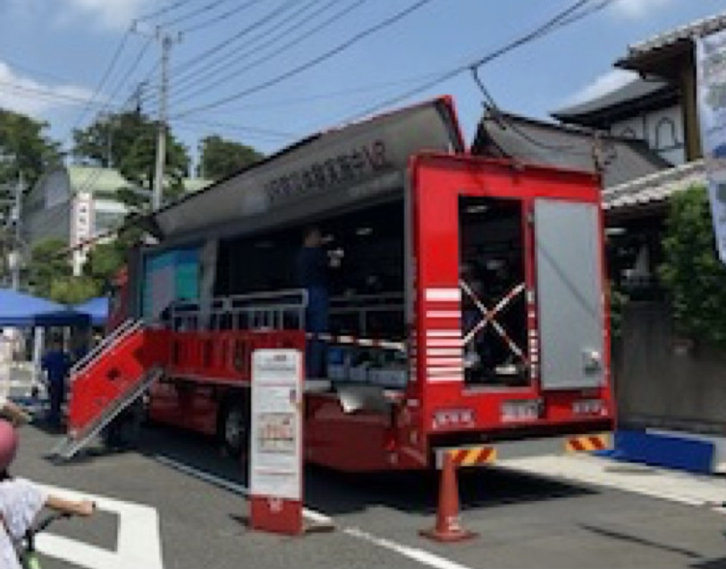 池上小学校の周辺では車両展示コーナーや体験コーナー、模擬店、物産展、フリーマーケットなどが行われ、たくさんの人で盛り上がりました。