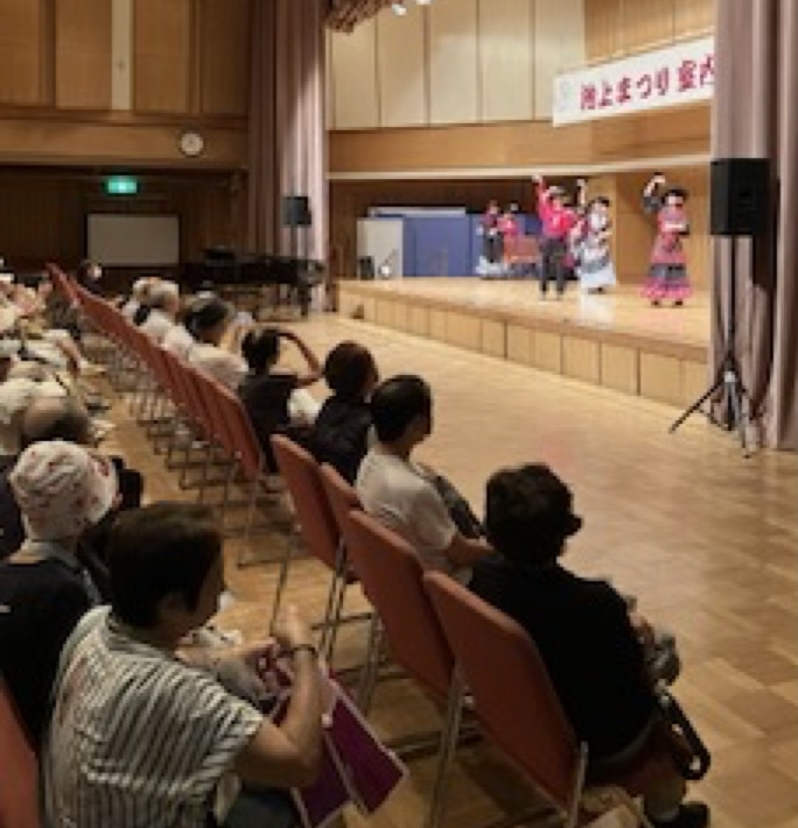池上小学校の周辺でも展示や体験、模擬店、物産展などが行われました。イベントのトリを飾った、くすのき連の阿波踊りでは、暑さを吹っ飛ばすような踊りを見せていただきました!