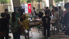 池上小学校の周辺では展示コーナーや体験コーナー、模擬店、物産展などが行われました。イベントのトリを飾った、くすのき連の阿波踊りでは、暑さを吹き飛ばすような踊りを見せていただきました!