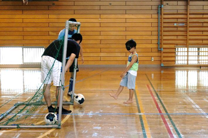 池上会館本館と西館では池上職人尽くし、室内ステージ、お楽しみ抽選会、真心市(バザー)、池上昔写真・SL模型展示、団体コーナーが行われました。パラリンピック競技体験ではブラインドサッカーを行いました。ブラインドサッカーとは、アイマスクを装着して声や音に反応し、ゴールを狙う競技です。小さな男の子も一生懸命ボールを追いかけていました!