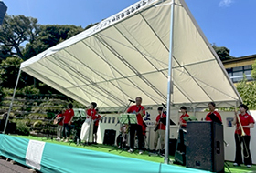開会式は、池上会館前の野外ステージにて行われました。その後、野外ステージでは、池上太鼓の演奏やフラダンス、ヒップホップダンス等見どころ満載でした。注目の原田真二さんのスペシャルボランティアコンサートでは、パワフルな歌声で手拍子や歓声があがり、大いに盛り上がりました。
