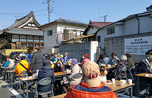 梅園の梅が見ごろを迎えていたため、梅まつりも大変にぎわいました。当日は2,100人のお客様にご来場いただきました。限定弁当「池めし」をはじめ、温かいおでんやお汁粉なども人気があり、早くに完売してしまったものもありました。