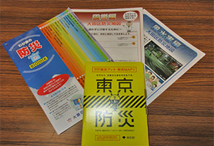 消防署からは都より全戸配付されている「東京防災」の内容に加え、災害発生前の備えと発生後における対応をわかりやすく説明していただきました。次に防災課からは、区が昨年全戸配付した命を守る3点セット「わが家の防災チェックBOOK 、「防災地図(震災編)」、「防災地図(風水害編)」についてわかりやすく説明していただきました。自宅周辺の被害想定や危険箇所を2種類の防災地図で確認してから防災チェックBOOKを活用することで、災害への具体的な対策や行動を考えることが出来ました。