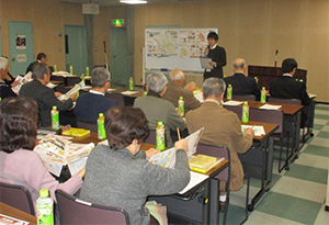 防災部会では、池上地区の防災意識を高めるための活動の一環とし、平成28年2月23日(火)、池上特別出張所3階会議室にて講演会を開催しました。当日は東京消防庁大森消防署市野倉出張所長と、大田区防災課職員を講師としてお招きしました。