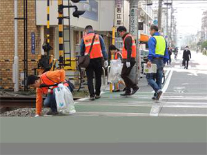 スポーツ感覚でゴミ拾いを楽しみながら、地域の美化に取り組む大会。晴天に恵まれる中、31チームがゴミの質と量をポイントに換算し、競い合いました。その他にも各チーム一人ずつついていただいた審判員、設営や誘導をお手伝いいただいたボランティア、チアリーディングを披露してくれた子ども達総勢約300名が集まり、活気ある大会となりました。