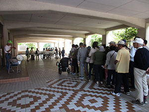 今回も好天に恵まれ、用意した300苗のミニトマトがわずか1時間ほどで配布完了となりました。